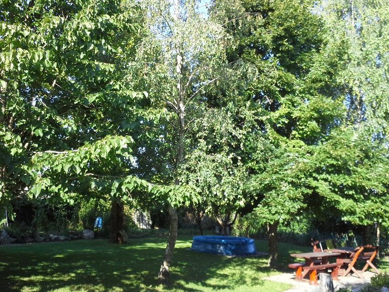 Idén megígértem, hogy kivágom, ha nem terem. És terem! Lassan kiserdõ leszünk, de minimum pagony. Tegnap este már bagoly is telepedett volna, ha nem riasztom el meglepetésemmel. A hárs és a platán mellé még megfér 4 dió is, ám úgy tûnik a juharnak mennie kell (lehet, meg tudom menteni és átplántálni).