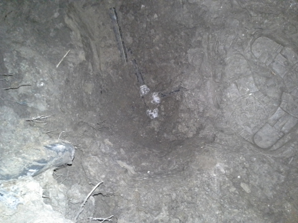 Most itt tartok. Lényegében javítottam a hibát, de a szennyvízcsövet újra kell szintezni és kicseréltem a T-elosztót is, most nem ereszt, viszont úgy tûnik, hogy van más rés is a pajzson, mert ha lezárom a rendszert a vízóra szaggatottan és halványan, de olyan, de meg-megpörög lassan és bizonytalanul. Olyan, mintha lenne egy folyás valahol az elõtte lévõ olyan 50 méteres szakaszon. Az meg az út alatt fekszik zömében, részben a kertemben. Most áshatok kedvemre!