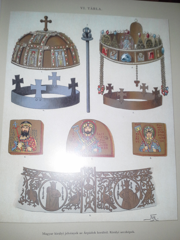 Érdekesség, hogy külön elemzi és magyarázza a korona két részét és a "kipát" rómainak a X. századbelinek elfogadja és ahhoz illeszti a dukászi abroncsot. 100-szor átbeszéltük. A kereszt egyenes.