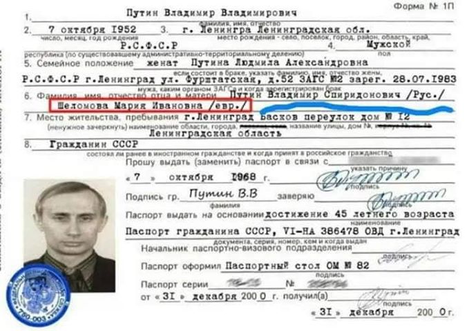 Ezt a képet a fészen kaptam a kérdéssel, mit jelent a "evr" és mit a "rus" a szülõk neve után. Nos, ha igaz a másolat, akkor a mama "jevrej", vagyis zsidó a papa meg russkij, vagyis orosz. Tudnak ezek mindent, vagy még anál is többet.