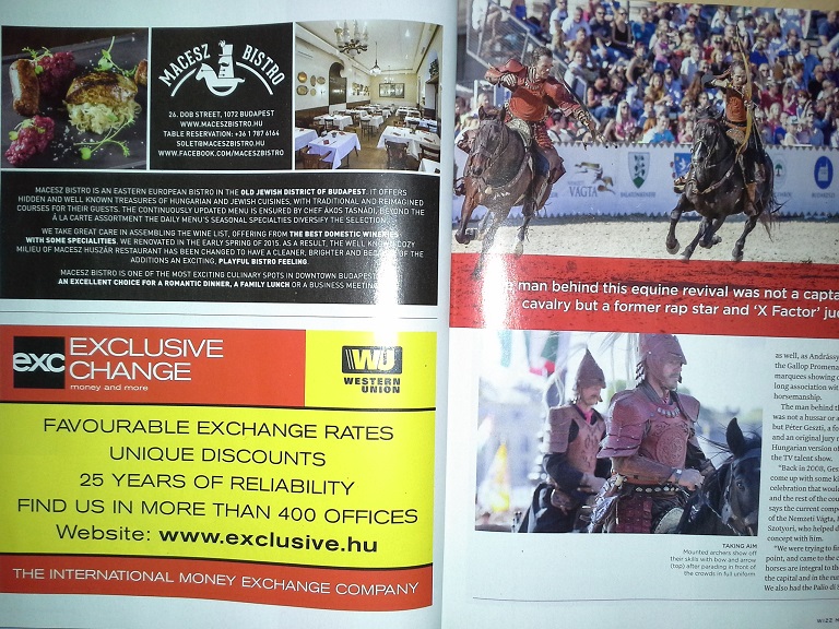 A Wizz Air magazin egyik lapja, mely a geszti-féle zsidó nem zeti agyonvágtát taglalja és a szkyta lovasok közé sikerült bepréselni egy kis maceszt, huszart és egy "csere-bere" program reklámot "nyugati szövetség" név alatt. NLP, csak a szokásos.