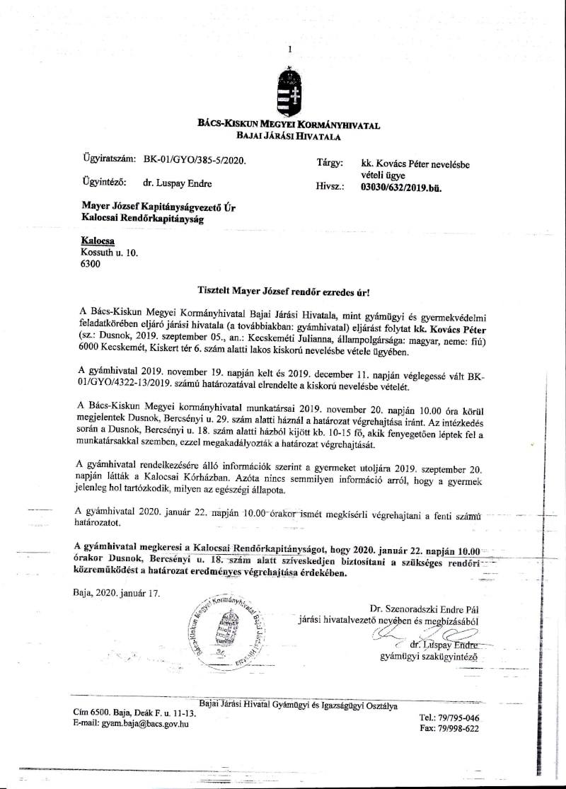 Semmi papírt nem kaptunk tehát egyértelmű a gyerekrablás! ezt egy gyámügyes is megerősítette. Amit most küldünk azt soha nem adták át nekünk, hanem a rendőrségen csak másolatot kaptunk mi szerint ez az ügy és a gyerekünket már el is nevezték valami Kovács Péternek és azonnal akarnak kreálni egy titkos örökbefogadást. el akarják tüntetni!"