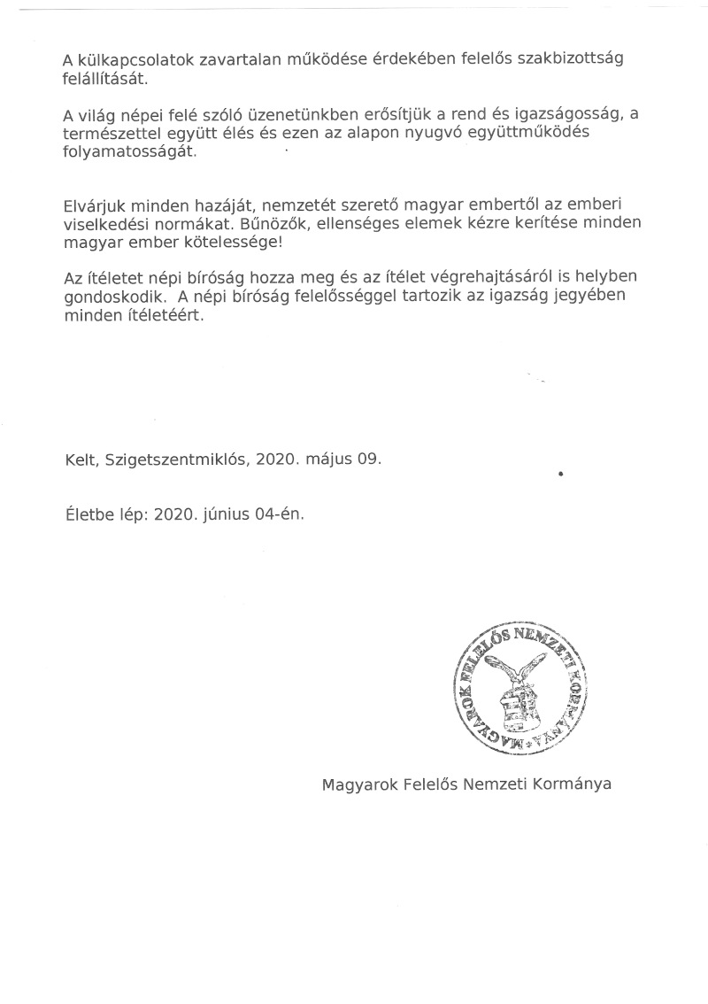 Magyarok Felelős nemzeti Kormánya június negyedikei rendelete